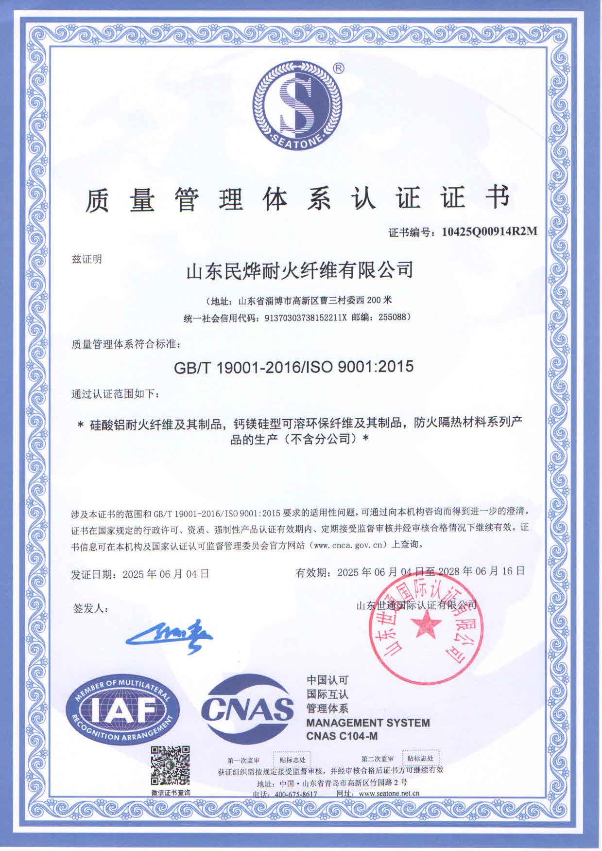 2025年質(zhì)量體系認(rèn)證證書